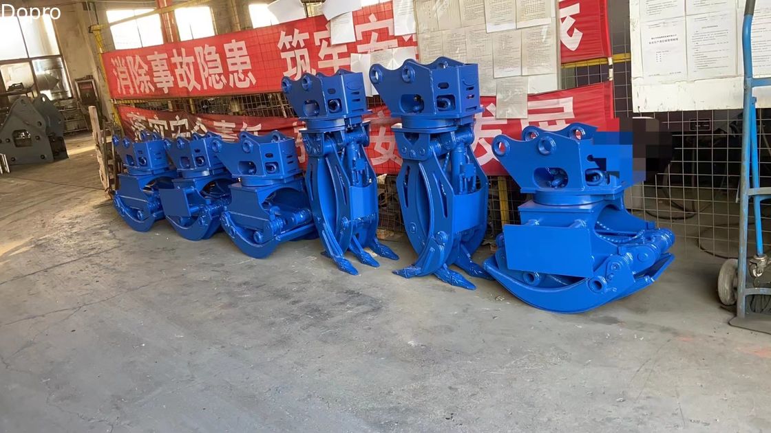 DP Wood Grapple to urządzenia montażowe do koparki do załadunku łupów i bel H.360 stopniowe obrót hydrauliczny sprawia, że efekt chwytania jest bardziej elastyczny. Wbudowany zawór bilansujący cylindra oleju sprawia, że praca jest płynna i utrzymuje siłę zacisku,zapewniając w ten sposób większe bezpieczeństwoDwukierunkowy zawór przepływowy i dwukierunkowy zawór równoważeniowy silnika mogą chronić go przed wpływem ciśnienia hydraulicznego.